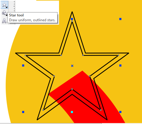 Sử dụng công cụ Star để vẽ hình ngôi sao, coppy hình ngôi sao vừa vẽ và dán nó ngay tại vị trí đã vẽ. Giữ Shift để co nhỏ hình vừa coppy: