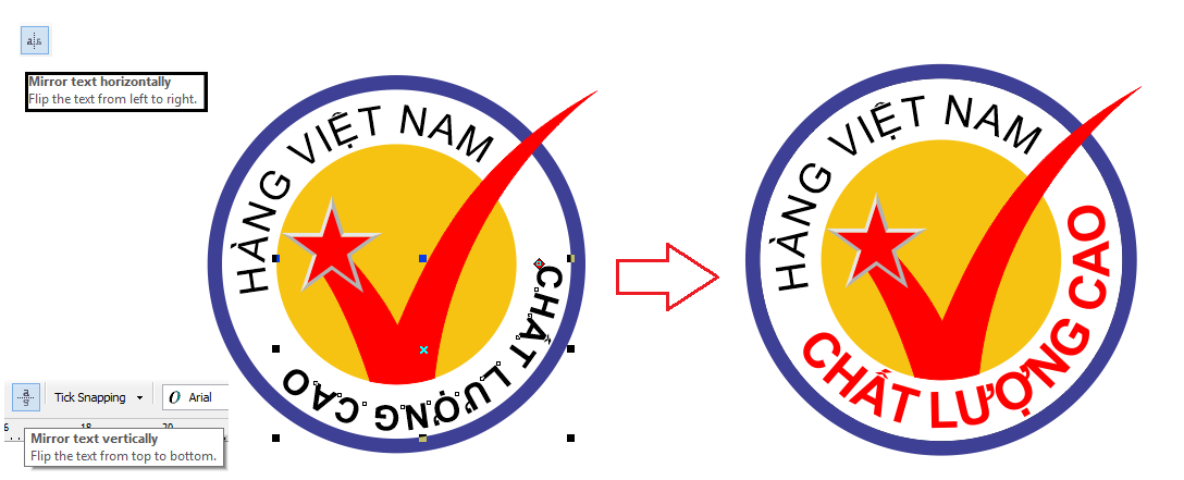Làm tương tự với cụm text còn lại. Với những những cụm text ngược với chiều của cụm text mẫu bạn có thể sử dụng chức năng lật text giống như trong hình sau:
